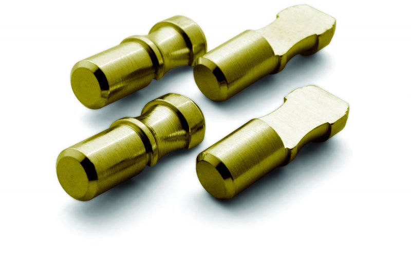 The K-10 brass shelf support pin comprises a decorative turned support and a cylindrical peg, which fits into the K-2 sleeve. The peg measures 1/4" in diameter x 3/8" deep, and the support projects 7/16". Supplied as a set of 4.
