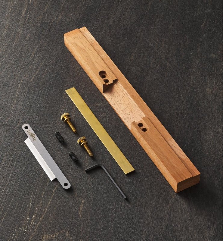 Ron Hock has done all the cutting for their jatoba Spokeshave Kit - you just have to glue in the brass wear-strip and shape the handles to suit your hands. All the parts are included: depth-adjuster set screws, brass thumb screws to secure the blade and a HOCK blade (SP062S).