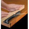 You simply push a piece of straight-grained softwood 5/8'' to 3/4'' wide over the blade, guiding it along a channel in the sole, to produce a long, tightly curled shaving. A 1/2'' tall, 2 1/2'' wide fence projects from the base to register against the edge of a bench, table or hearth; a screw-hole in the fence also allows it to be fastened to a block of wood and clamped in a vise.
