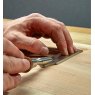 Veritas designed this flushing chisel based on a set of antique patternmakers’ chisels from their collection. More than just for flush trimming inlay or joinery, a flushing chisel allows you to work into corners and extend flat surfaces right up to adjacent surfaces where a plane blade cannot reach. One hand pushes the tool while your other hand guides the blade along the workpiece, giving you fine control with a comfortable grip, producing a smooth paring action.